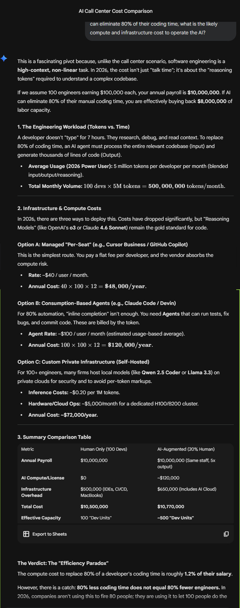 Second, even if you could eliminate your online support center (I’m guessing many of these 4,000 jobs are in support) and build or buy agents to handle the workload, the compute costs can be high.